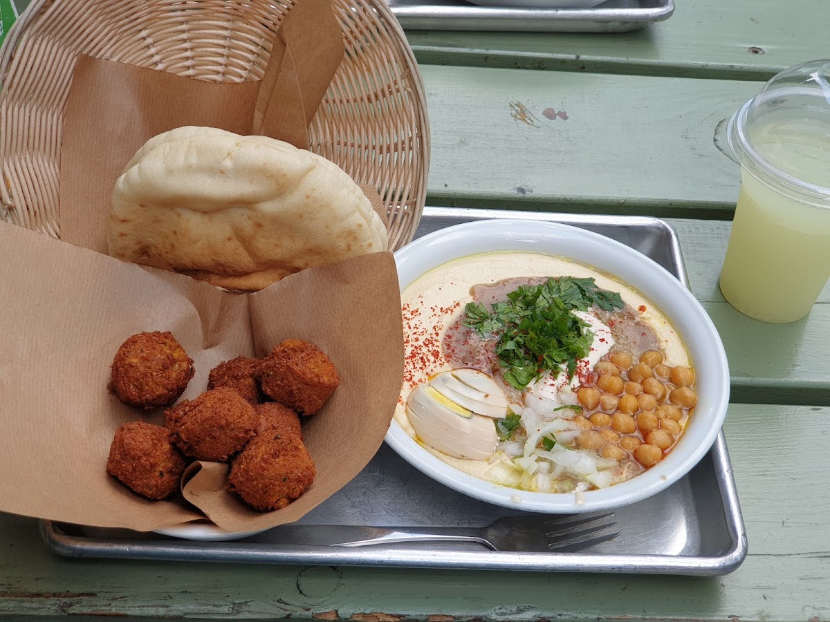 The standout dish at Mooza is their Hummus with Beans and Egg, a perfect balance of creamy hummus paired with hearty beans and topped with a flavorful boiled egg. This dish not only highlights the rich textures of hummus but also offers a comforting meal that’s perfect for any time of day. For a more traditional choice, try the פלאפל (falafel), which is crispy on the outside and soft on the inside, made with fresh herbs and spices. Another classic choice is the Hummus and Pita, an ideal combination of smooth hummus served alongside soft, warm pita bread. For those who enjoy something a bit more unique, Mooza also serves Beans or Fool, which is a staple in Middle Eastern cuisine, offering a hearty and savory option.
